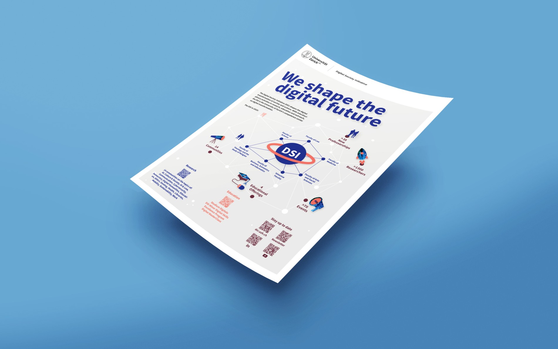 Seit über acht Jahren begleitet eine flexible Bildidentität die Kommunikation der DSI – von internen Universitätsveranstaltungen bis hin zur breiten Öffentlichkeit. Ob Spotify-Podcast, Flyer für das Schweizer Parlament oder digitale Keynote-Präsentation: alles entspringt demselben visuellen System.