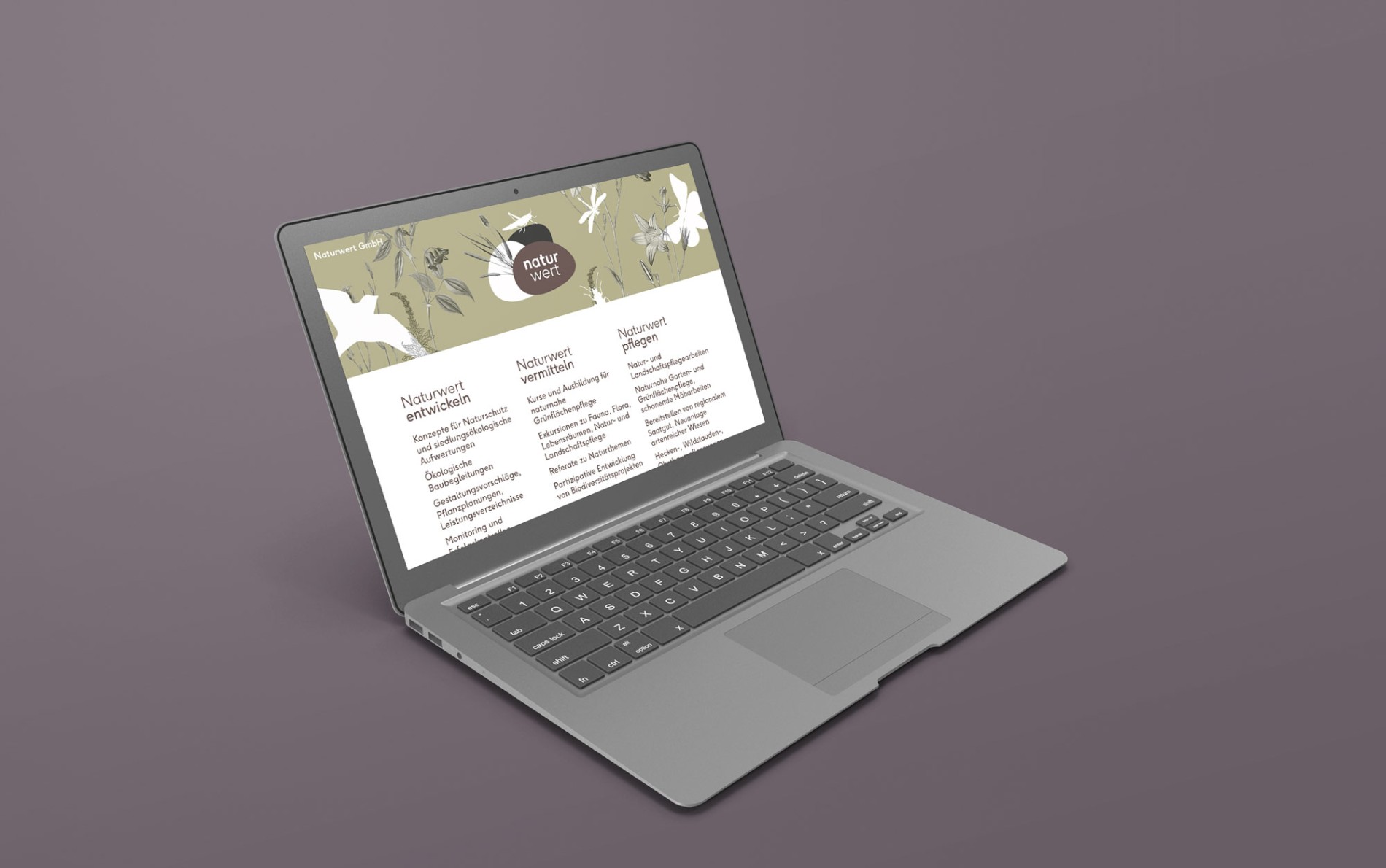 Die Leistungen umfassten ein durchdachtes Webdesign, das mit einem stimmungsvollen Farbwechsel von Dunkelheit zu Helligkeit spielt, ein anpassungsfähiges Logo, jährlich wiederkehrende Weihnachtskarten, Fahrzeugbeschriftungen und vieles mehr – alles getragen von einer Gestaltung, die mit frischen, natürlichen Elementen spielt und die Verbundenheit zur Natur spürbar macht.