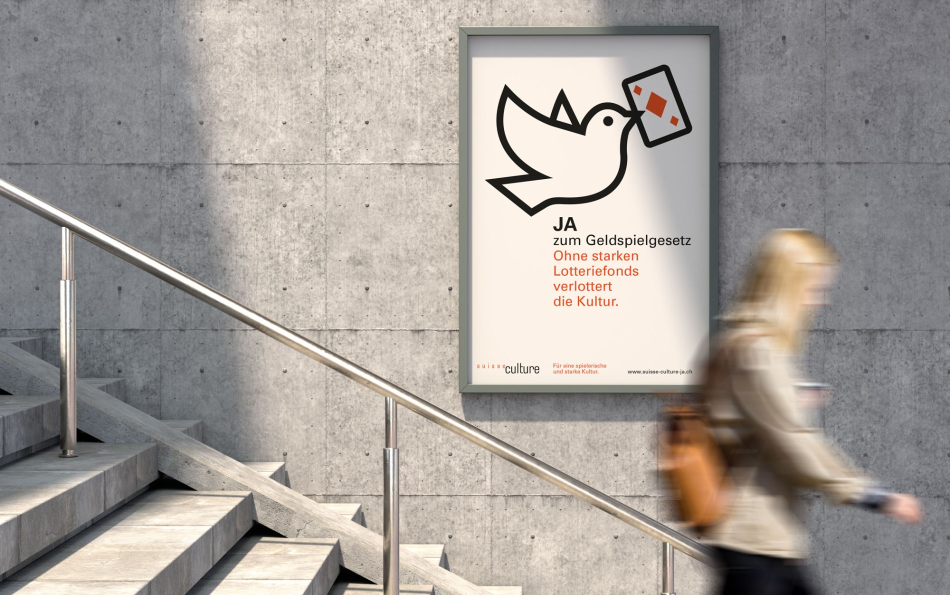 Für Suisseculture, den nationalen Dachverband der Kulturschaffenden in der Schweiz, entstanden zwei visuelle Auftritte zu Abstimmungskampagnen, bei denen eines im Vordergrund stand: Klarheit. Die Gestaltung bringt die Hauptaussage sofort auf den Punkt – deutlich, lesbar und auch aus der Ferne verständlich. Wenige Elemente, gezielt platziert, damit das Wesentliche nicht übersehen wird.